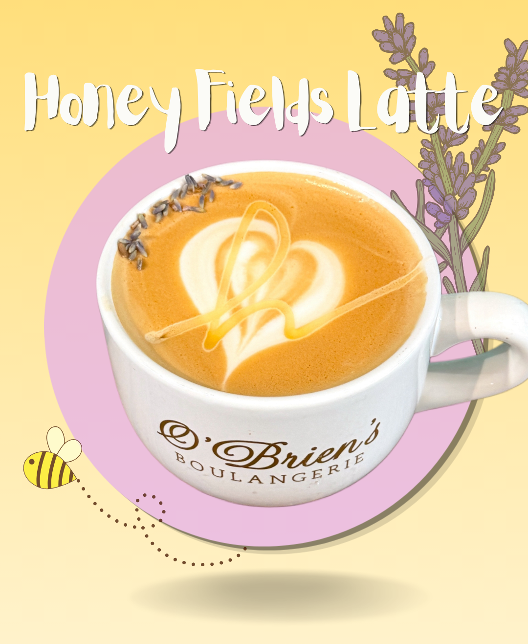 A smooth, aromatic latte infused with delicate lavender and lightly sweetened with golden honey, creating a calming floral twist on a classic espresso drink.