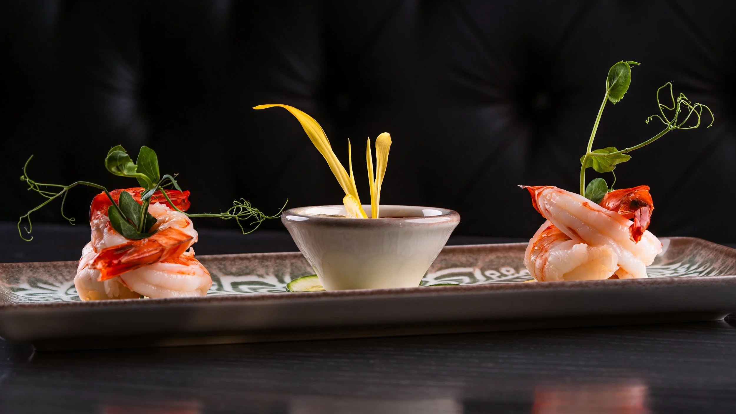 Fire-Roasted Cocktail Sauce | Zesty French Remoulade | Baby Corn Shoots | Cucumber